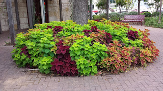 | This lovely verbena from Stillman’s hangs at my front door. I should say door because there is no back door. There is a door to the inside of the building but I don’t ever expect, if there is a fire , to run into the building. Well, maybe if the lawn is on fire… | ||